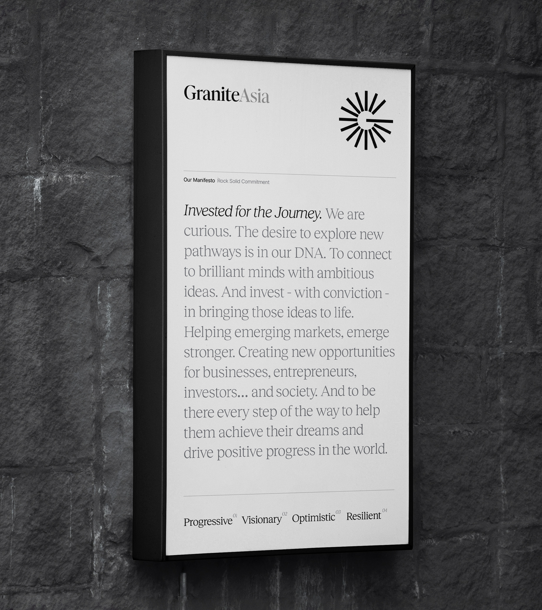 Inspired by the name ‘Granite’, we used the company’s founding principle of commitment to a journey as our starting point.
