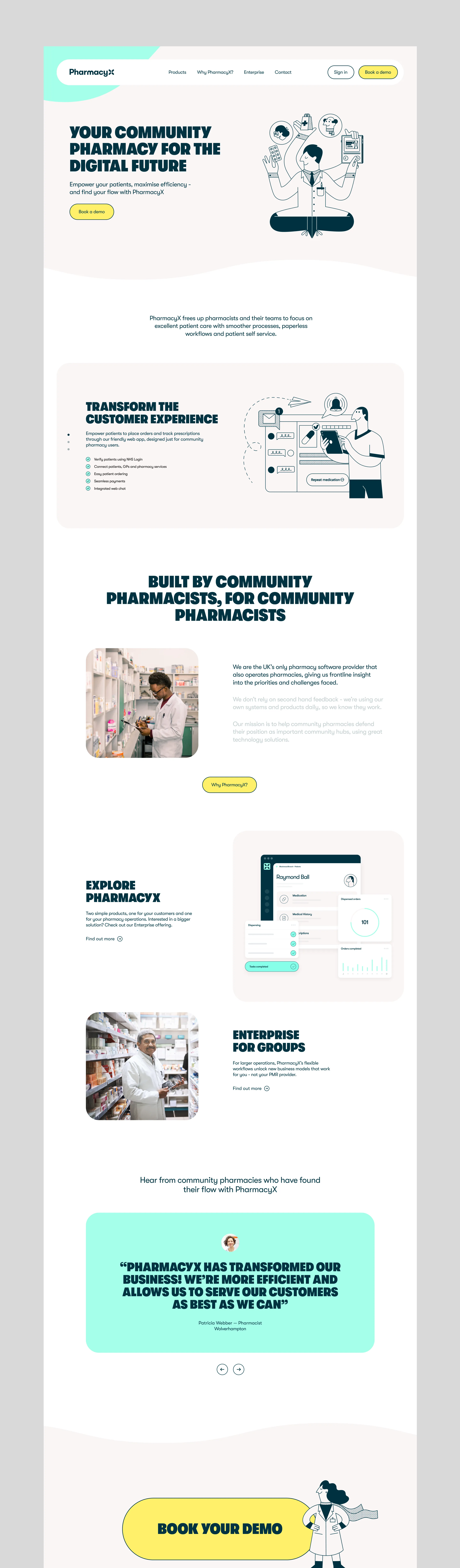We designed and developed a user-centred website that brought the PharmacyX brand to life online — balancing approachability with innovation.