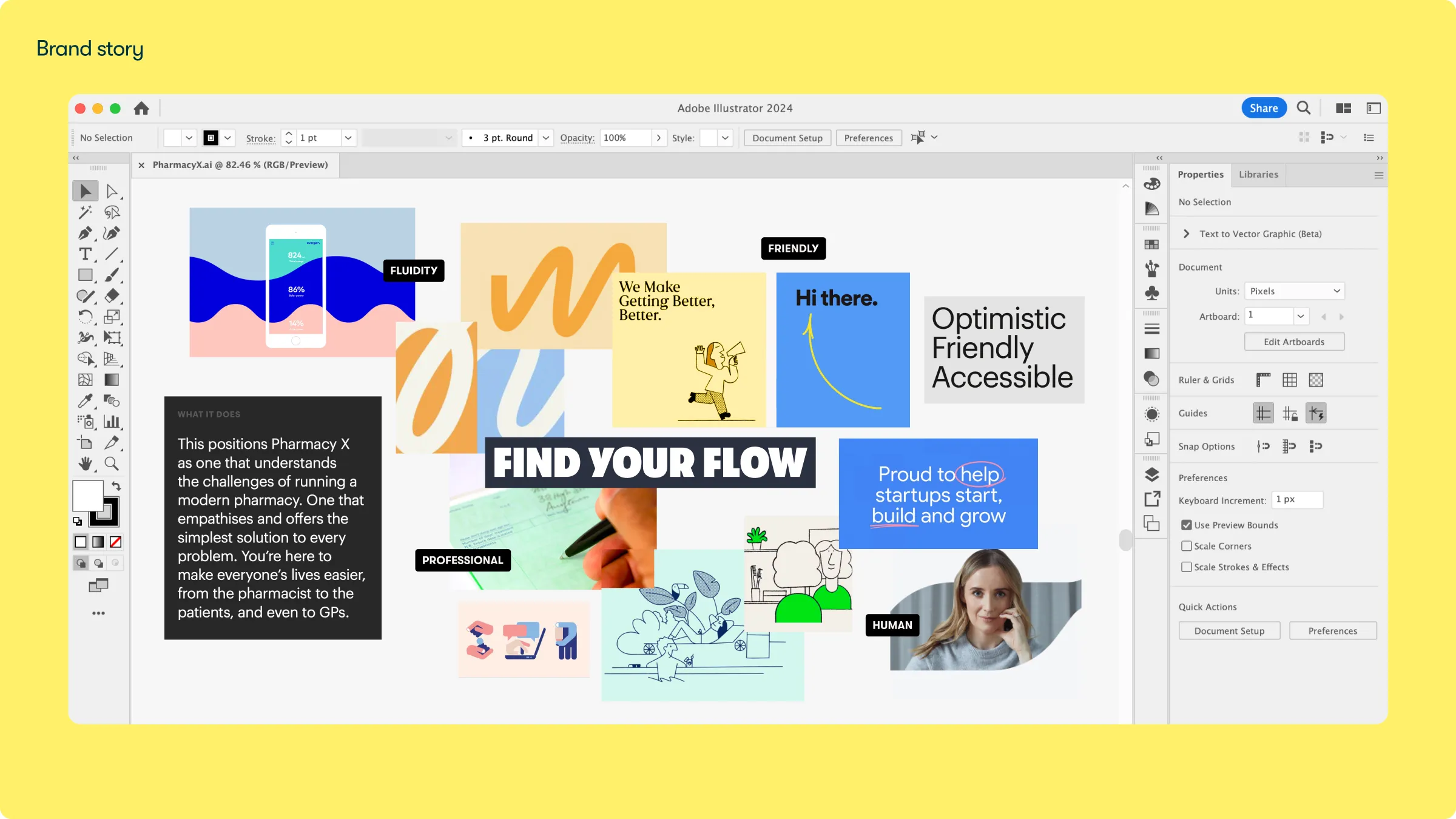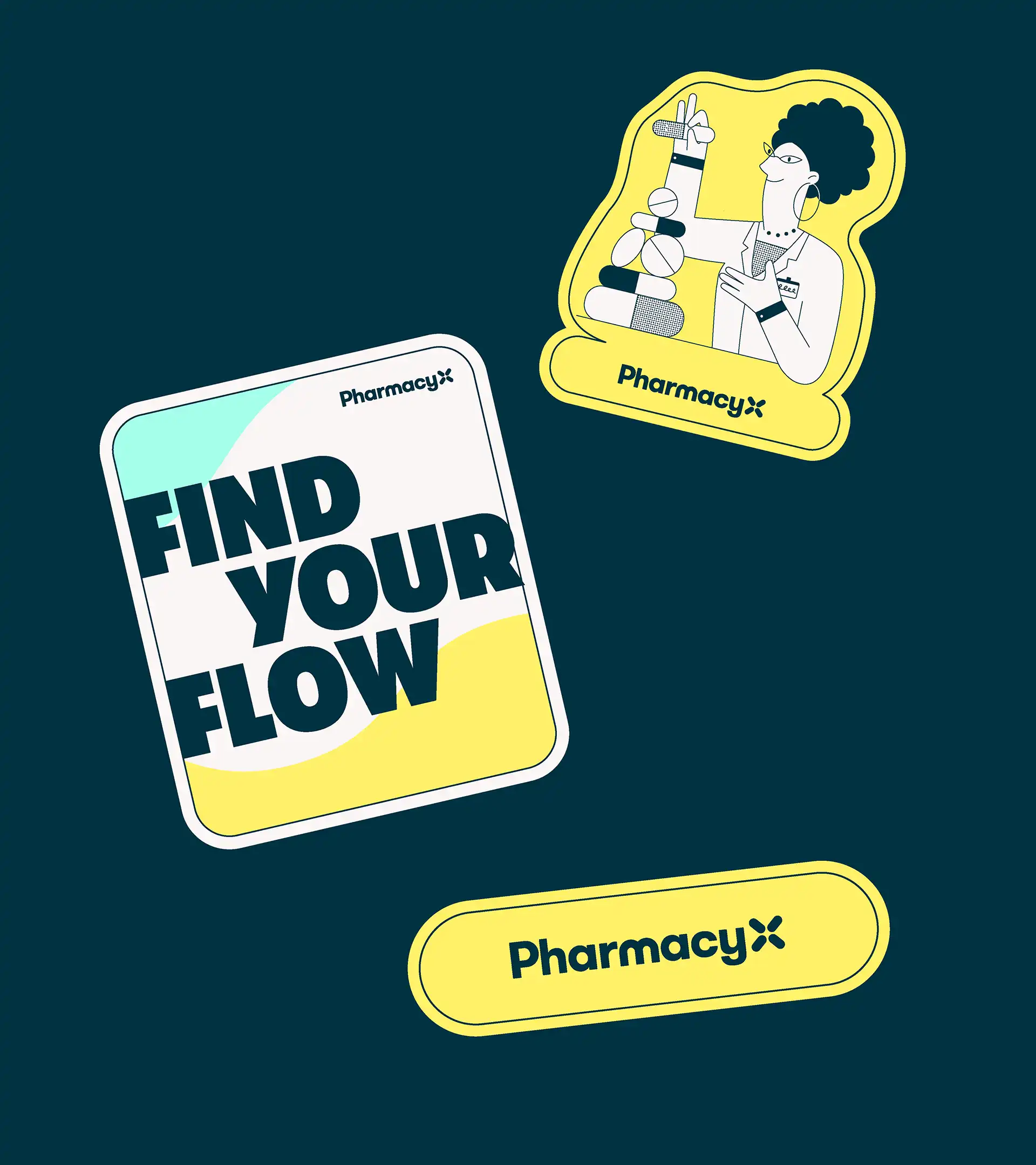 The result is a cohesive brand world that balances professionalism with warmth, bringing together every visual element to reflect PharmacyX’s unique vision.