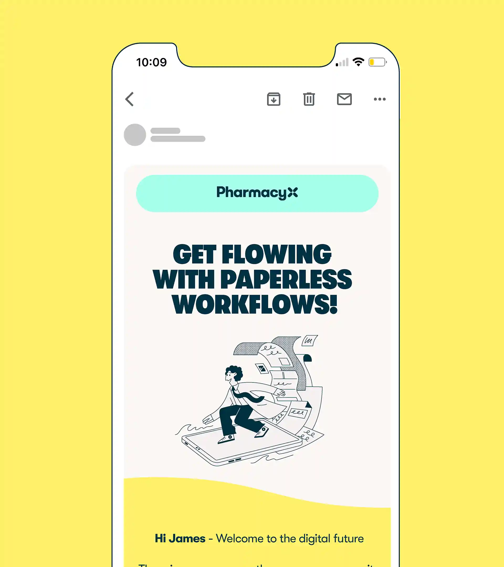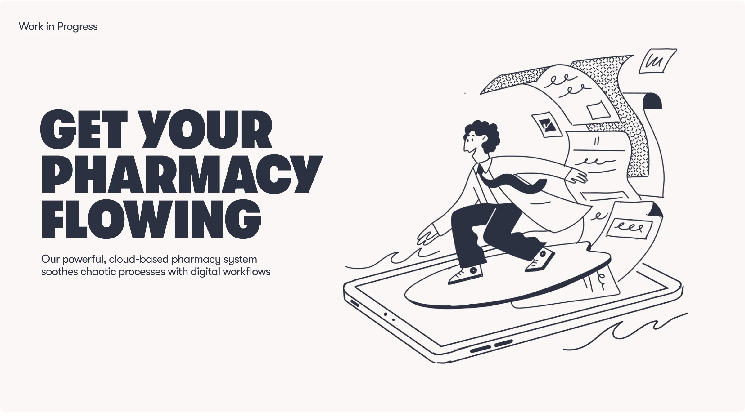 Mint is inspired by the colour of prescription paper, with yellow for a sense of optimism. Off white adds warmth, while navy helps ground the palette with a complementary contrasting colour. Bespoke illustrations are sophisticated and friendly, depicting pharmacists ‘in flow’, while simple rounded icons reinforce the fluidity within the identity.