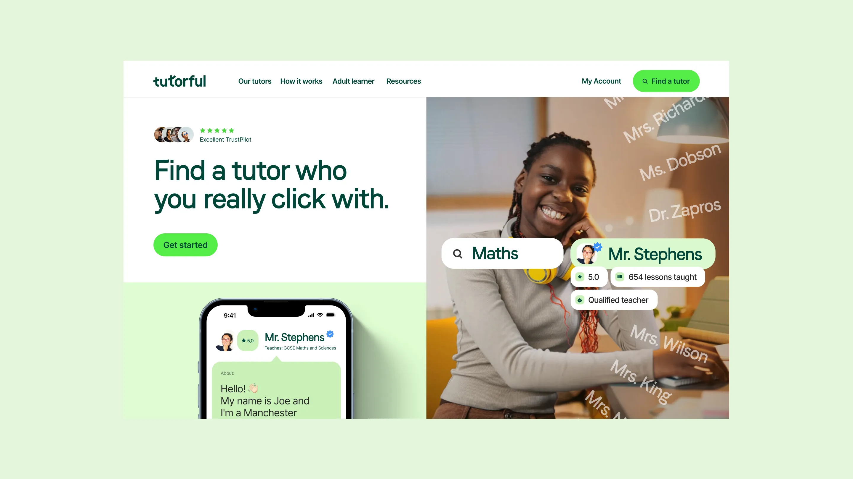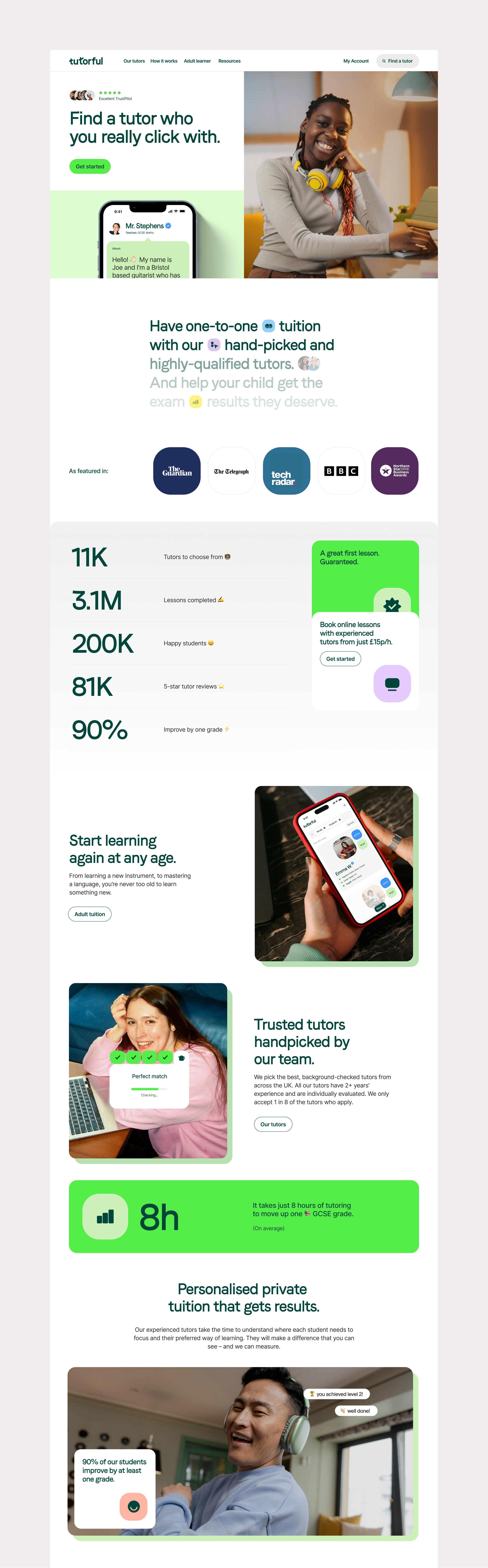 We were inspired by the idea of “finding a tutor you really click with” and made this the cornerstone of the updated brand—highlighting Tutorful’s wide range of tutors and subjects, and its flexible approach to learning.